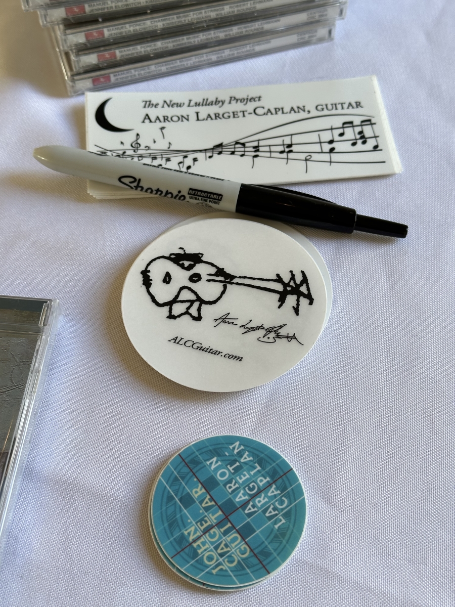 What started as a small promotion of the New Lullaby Project became stickers for various projects, a drawing of “mascot” drawing (curly hair and all!), to mugs and t-shirts with bits of truth and of music wisdom.