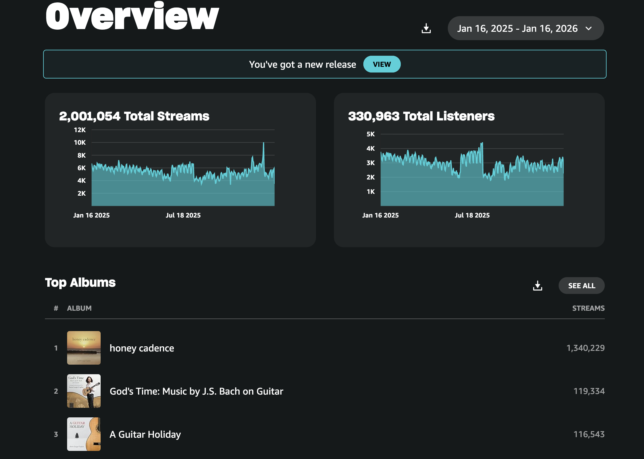 May, Recorded all of the solos for Guitar America 250 (coming on March 1, 2026!), and reconnected with violinist Irina Muresanu for a recording of our arrangement of ‘Adoration’ by Florence Price. Premiere of New Lullaby Project solo ‘All Through the Night’ by Keane Southard.
